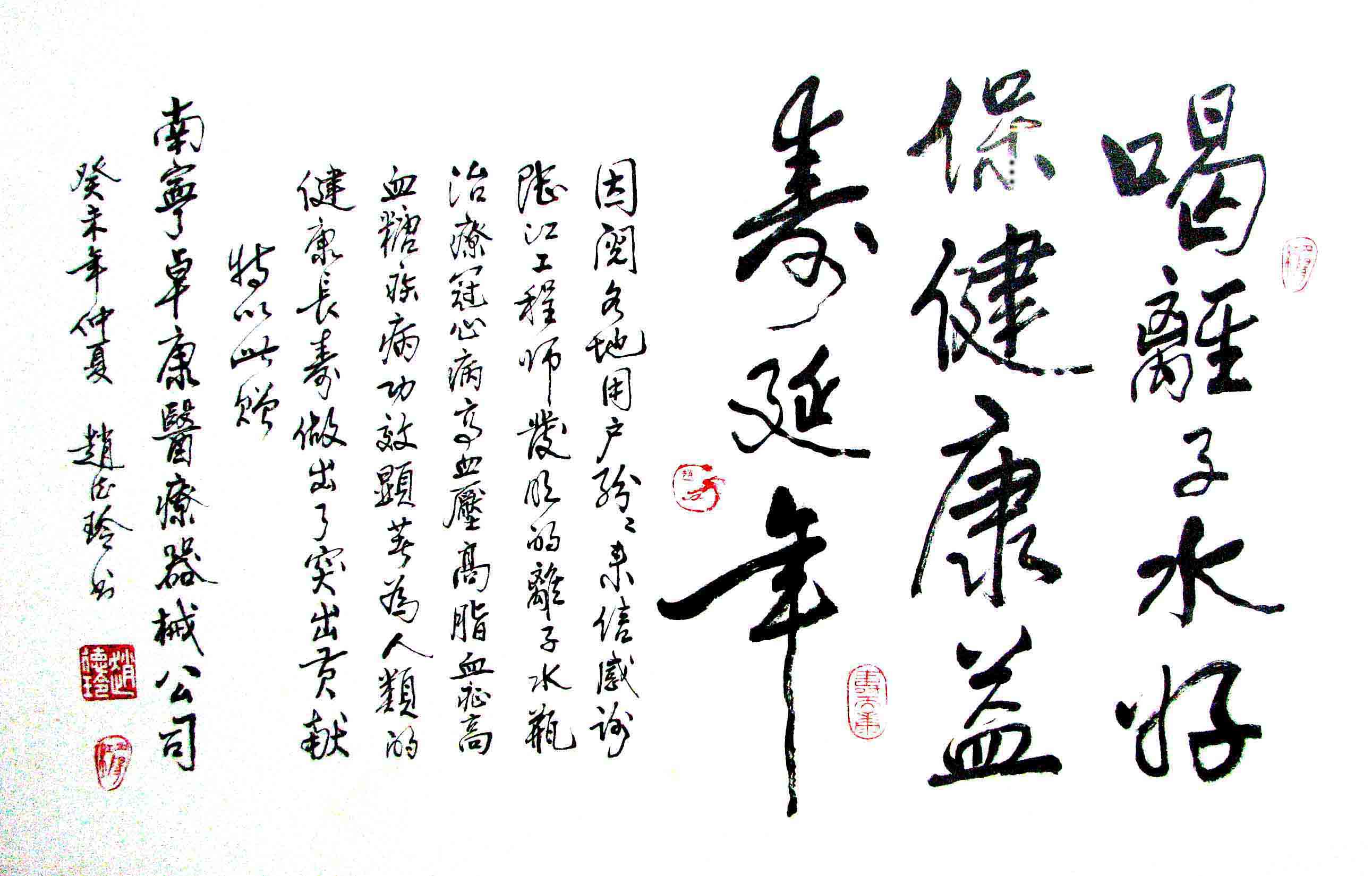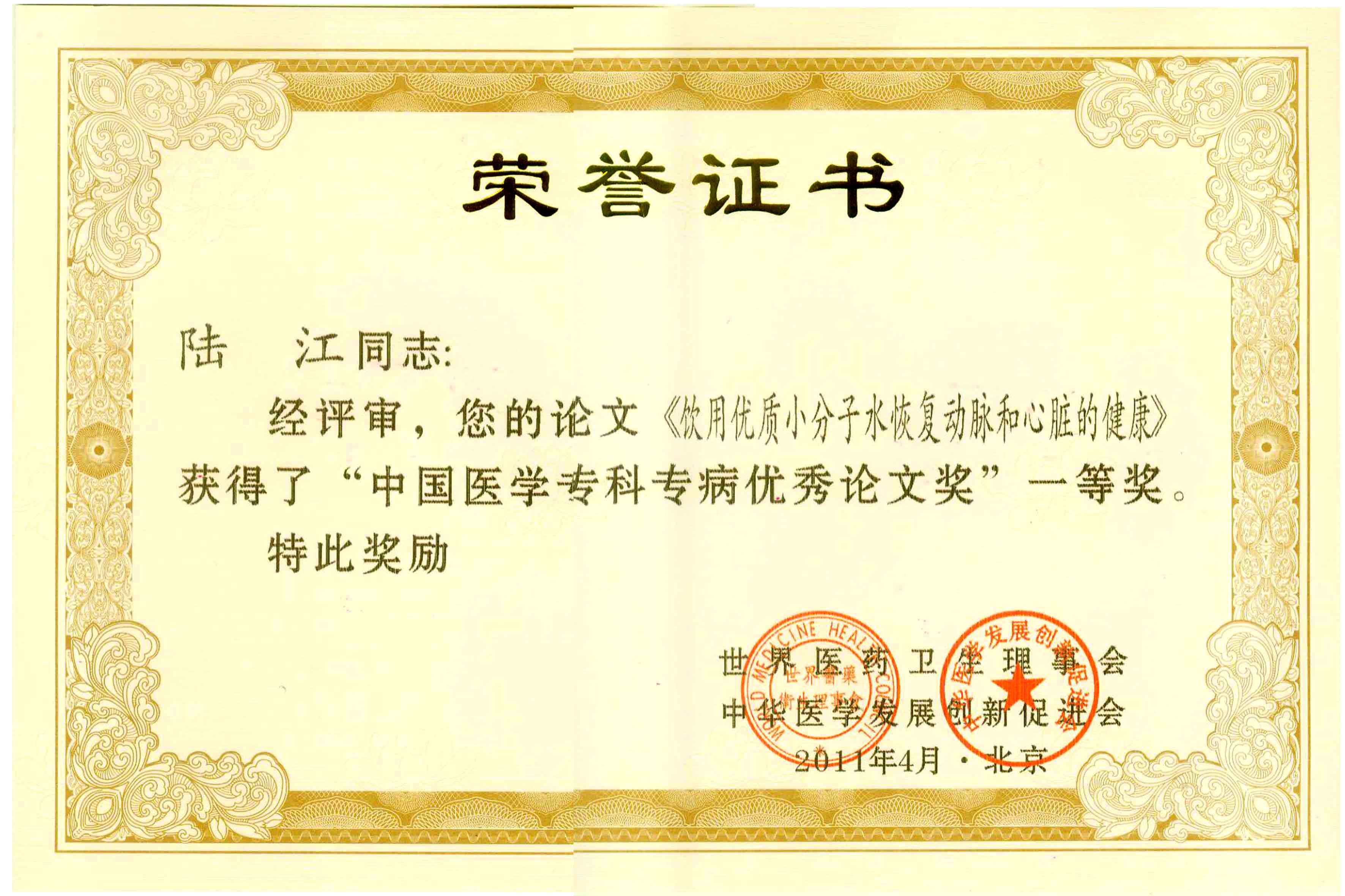 -----我是從事建筑的高工,本來沒有資格去攻克醫(yī)學難題,卻為了自身健康才扣響醫(yī)學的大門。由于我1990年患高血壓,因怕中風才研究發(fā)明了離子水瓶,我把水處理成微小分子團水,飲用后治愈了高血壓。便于1993年底送到三家省級醫(yī)院做臨床試用4個月。經北京和廣西醫(yī)學專家鑒定:"降脂降壓效果好"," 能擴大心腦動脈流量,改善心腦電圖以及微循環(huán)","對治療心腦動脈粥樣硬化、高血壓、高血脂有良好的醫(yī)療保健作用。""產品的技術性能和療效達到了同類產品的國內領先水平,經廣西醫(yī)學科學情報研究所檢索,未見國外有類似報道。"中國醫(yī)學科學院張正國教授從美國國立醫(yī)學圖書館數(shù)據(jù)庫存Medline檢索英俄文資料,均未見類似報告。2000年上市后,我為了對消費者負責而繼續(xù)觀察研究,一直通過《信譽卡》和《質量跟蹤調查書》向患者承諾療效,請用戶使用6個月后反饋效果。和脂壓患者飲用2至5個月內,消除癥狀,停服藥物,血壓正常;冠心病患者飲用3~5個月逐漸減輕至消除心絞痛、房顫等癥狀,不再服藥,飲用1年左右心電圖正常,經冠脈造影掃描無明顯狹窄,表明冠心病痊愈。大量患者還反映許多衰弱器官被修復,讓前列腺增生、慢性咽喉炎、慢性氣管炎、支氣管炎、慢性胃炎、腸炎和膽囊炎等不藥而愈;2型糖尿病患者是因為胰島衰弱致病,飲用該水半年至一年,逐漸減藥至停藥,血糖尿糖正常,真正治愈2型糖尿病。中風后遺癥患者飲用六七個月,可逐漸減輕至消除肢體和語言障礙,表明飲用該水能讓壽命很長的神經元細胞逐漸修復,奇跡般地恢復肢體和語言功能。飲用后還使胸腺和脾臟兩個重要的免疫器官被修復和增強,產生免疫細胞多,提高了免疫力,使人不生病或少生病。自此, 飲用微小分子團水創(chuàng)造了攻克冠心病、高(低)血壓和糖尿病三大醫(yī)學難題的奇跡。人們對此感到不可思議,但實踐是檢驗真理的唯一標準。