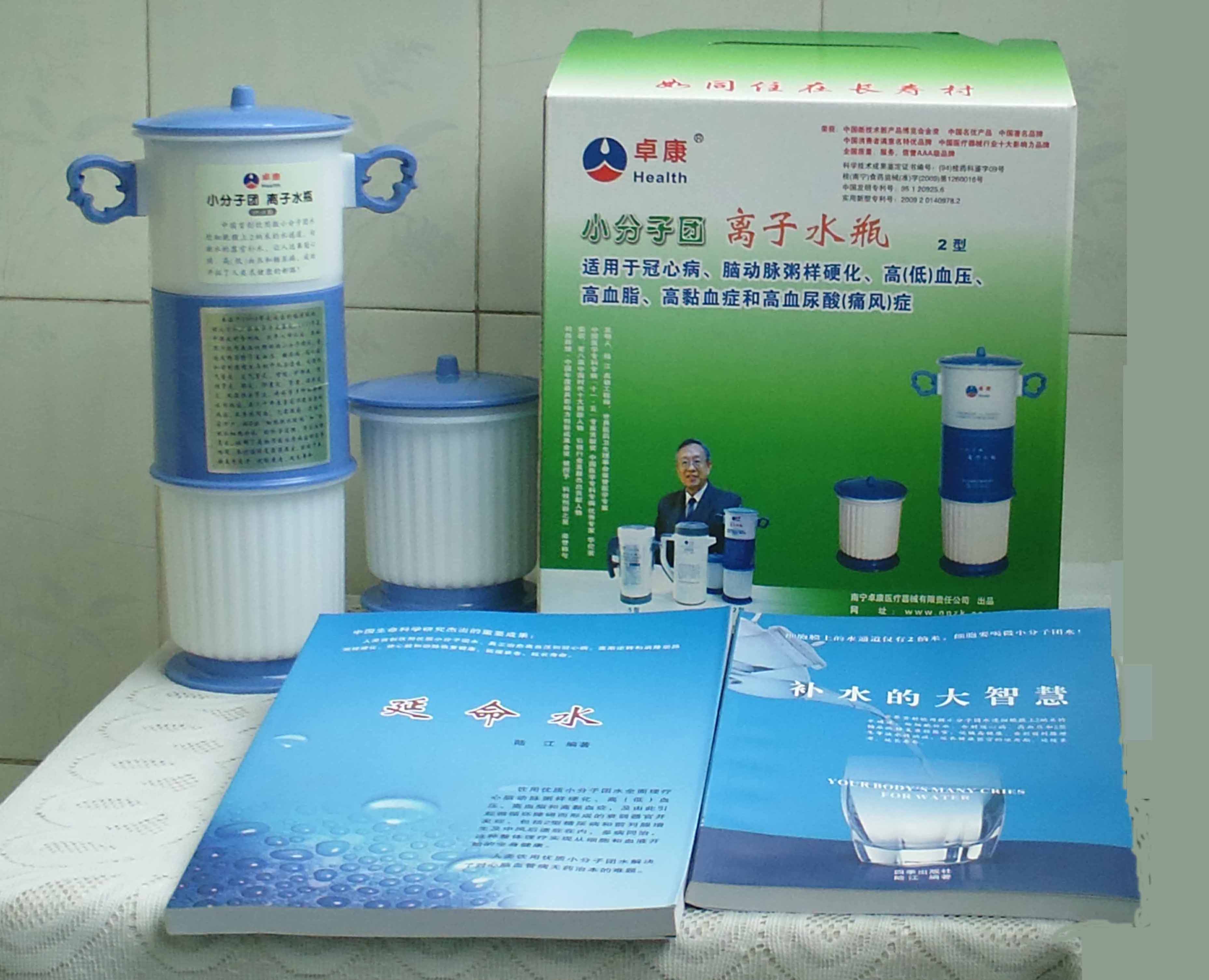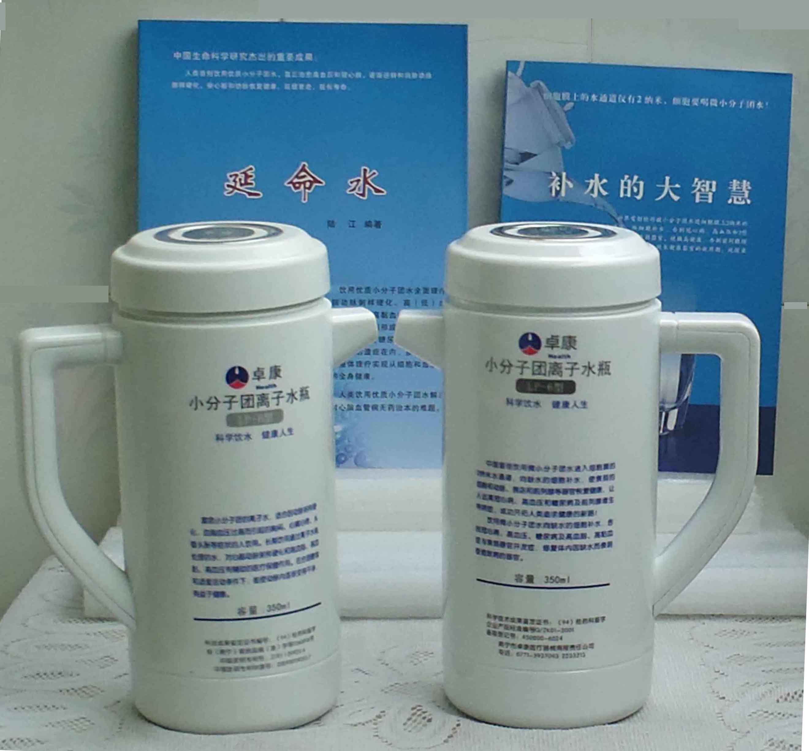 本品大量用戶的使用效果表明,能治愈冠心病、腦動脈硬化、原發(fā)性高(低)血壓、高血脂、高粘血癥、高血尿酸癥(痛風)和2型糖尿病、衰弱器官并發(fā)癥(前列腺增生、腎衰與尿毒癥)及中風后遺癥等療效好。產品配信譽卡。使用壽命30年,不換芯,易清洗。團購優(yōu)惠。從郵局匯款,匯費1%,地址按本頁下方地址、聯(lián)系人寫。從銀行匯款,請點擊[聯(lián)系匯款]欄,從工商銀行匯款,建設銀行、農業(yè)銀行匯款,均免收匯費,匯款后20--30分鐘內發(fā)短信,可用微信轉帳,均免匯費,微信號即手機號13768308380。匯款后,告知你的姓名和地址,我公司聯(lián)系人手機號是:13768308380。卓康牌離子水瓶為我公司獨家生產,郵購產品配《補水的大智慧》彩印書一本,另配四季出版社出版的新書《補水的大智慧》一本,并配光盤一張(含央視主持人釆訪陸江的對話視頻)。目前市場和"淘寶網(wǎng)"上有人兜售假冒的偽品,望讀者審察辯別真?zhèn)危旒僬哓飧`假冒本公司的各種認證、獲獎獎項、專利號和外包裝盒上的中英文字,包括科技成果的鑒定意見等,請讀者注意防偽。如何識別假貨?已經買了假貨怎么辦?(請點擊[打假掠影][打假掠影])。