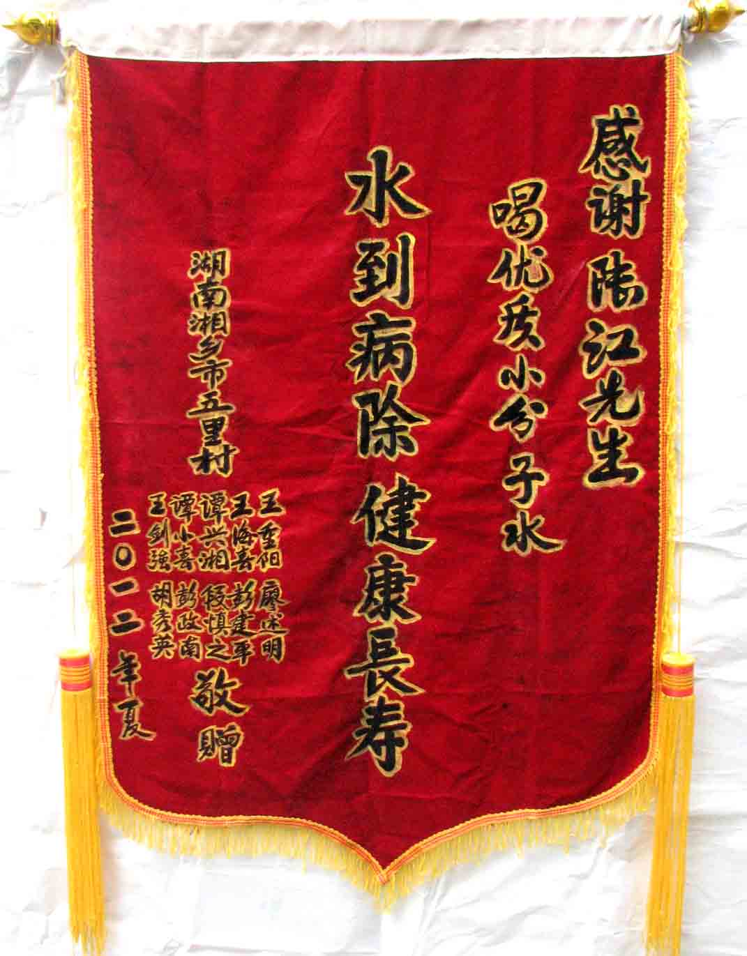 2015年潘志山主動寫一篇感想《我以親身實踐打破了冠心病、高血壓、糖尿病需終生服藥的神話》說:“堅持按發(fā)明人陸?江先生倡導的用‘已饑方食’的方法合理膳食,我的健康狀況越來越好:糖尿病造成的視力下降有了明顯的恢復,末梢神經炎導致的指端潰爛現(xiàn)在完全痊愈,痔瘡自從飲用微小分子團水半年后就再也沒有復發(fā)過,氣滯血瘀造成的嘴唇暗紫也漸漸變得紅潤,舌下靜脈黑紫消失,足背的動脈由以前的隱約感到跳動現(xiàn)在變得清晰有力。”[13]潘先生披露的訣竅,一是飲用微小分子團水給脫水細胞補水,二是“已饑方食”養(yǎng)生智慧,患者都能做到。