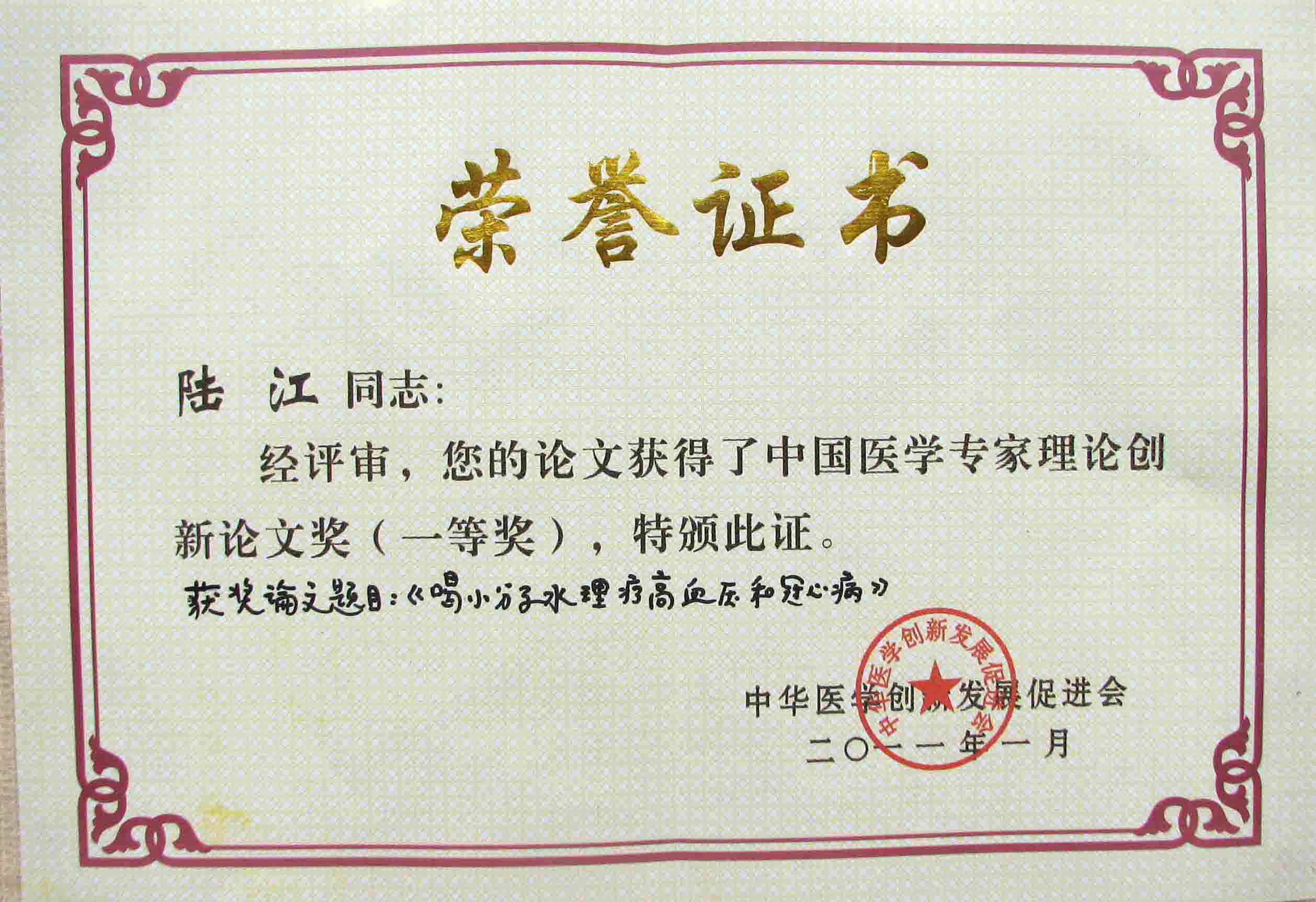 新疆63歲的賀兆生飲用一年,冠心病未愈,他用電話介紹是食堂管理員,問他食量多少?說吃七八分飽,睡前還吃兩袋牛奶,陸 江說我在論文和書中多次批判“吃七八分飽”,關照患者務必用“己饑方食”控制主食肉食量,要他把牛奶改在早中餐吃,減少主食肉食量,建議不吃晩餐,晚上只吃一個蘋果,再經幾個月補水節(jié)食,治愈了21年的冠心病和肥胖、失眠等病,信中由衷地感激陸 江為再生父母。[13]因為醫(yī)生從未過問他的膳食習慣,只管開處方藥或手術,父母也不會叫他不吃晩飯。